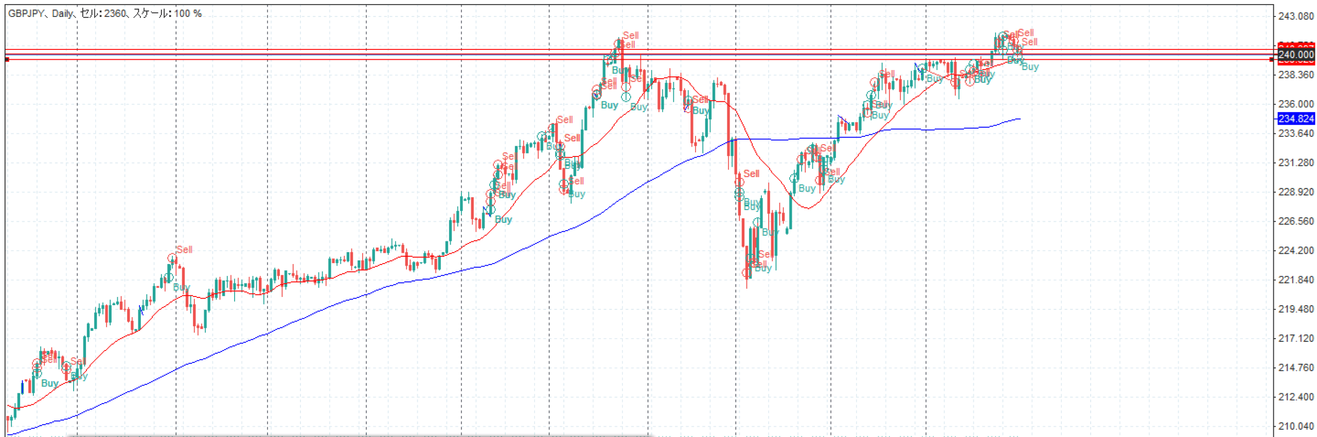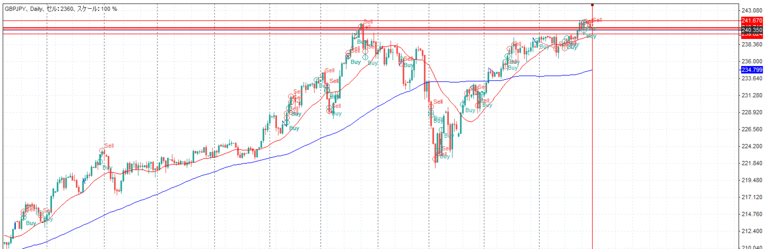 ポンド/円 2007.5.31 00:19 公開日:2025年10月1日 トレード練習 ショートでエントリー エントリー 240.000 損切 240.397 利確 239.628 日足 現在高値と安値を切り上げている上昇トレンドの最中 21SMAとローソク足の距離が空いているので差を埋めるため […] 続きを読む