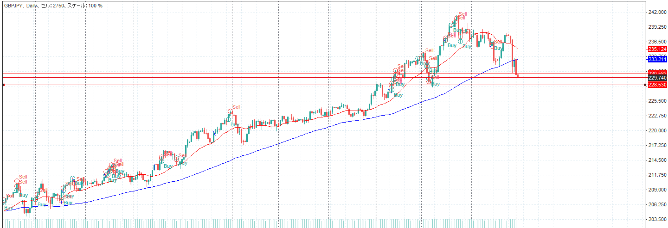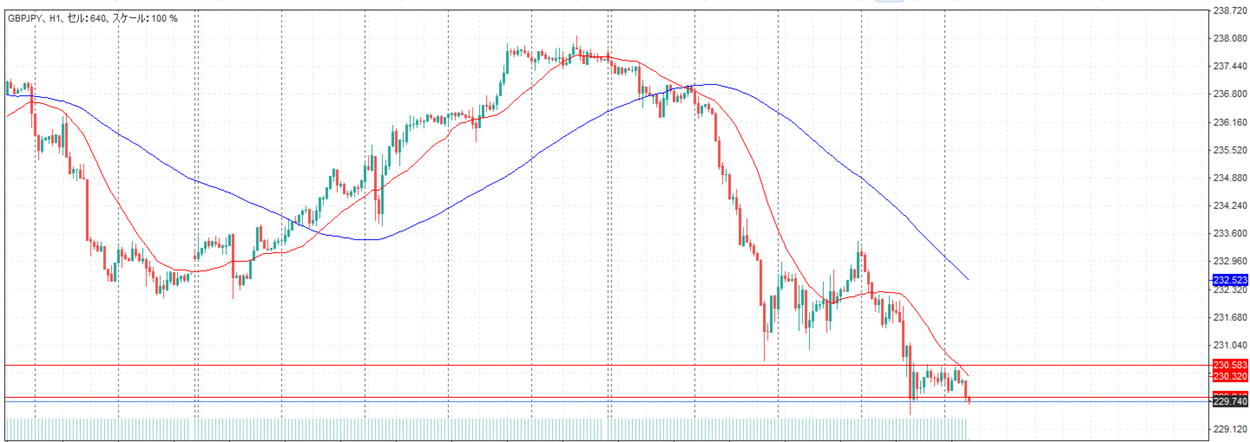 ただ、3回止められている水平線に21SMAのレジスタンスが入り下降