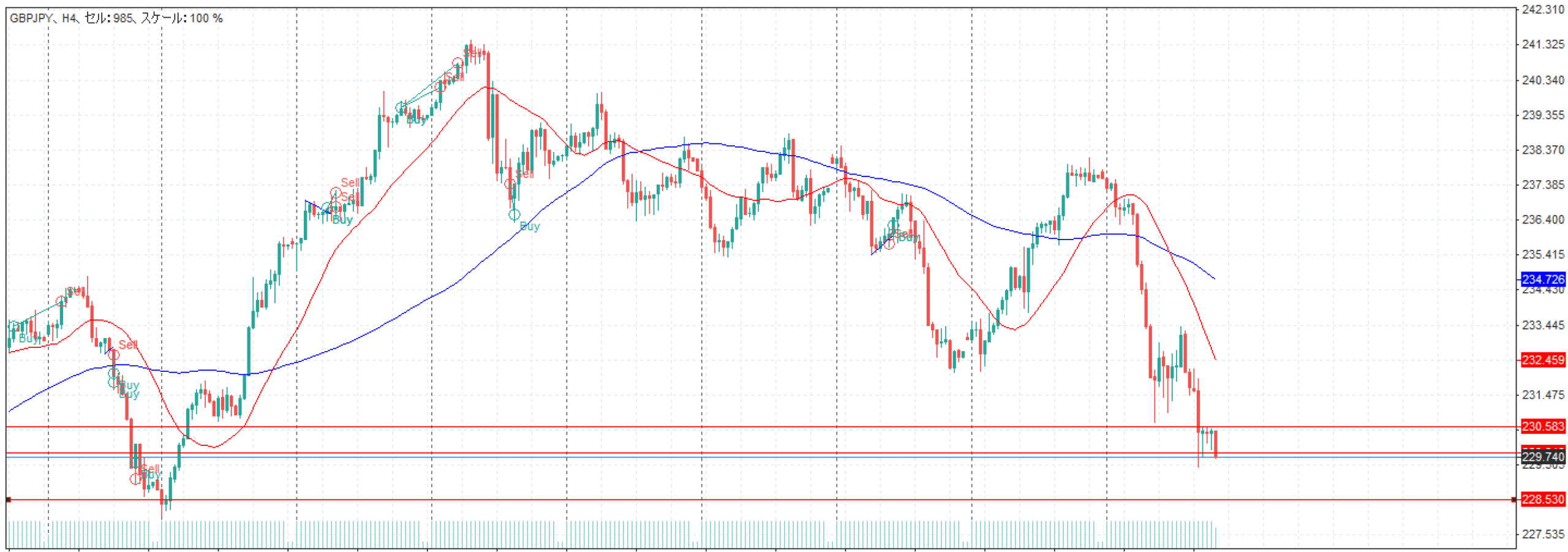 ただ、高値と安値を切り下げていることから売り目線で見ていく
