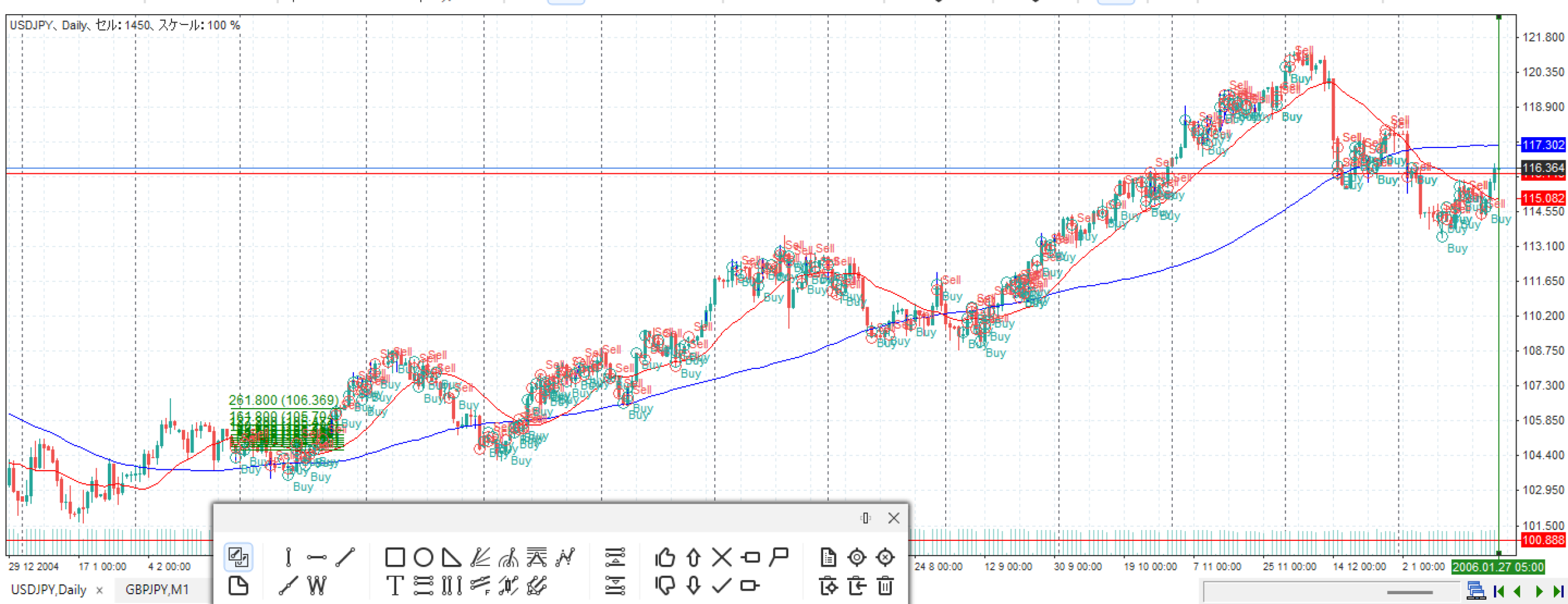 15分 116.297がレジサポになり2回上昇を止められていたが、ブレイク 21SMAと84SMAもこれから拡散していく見込み