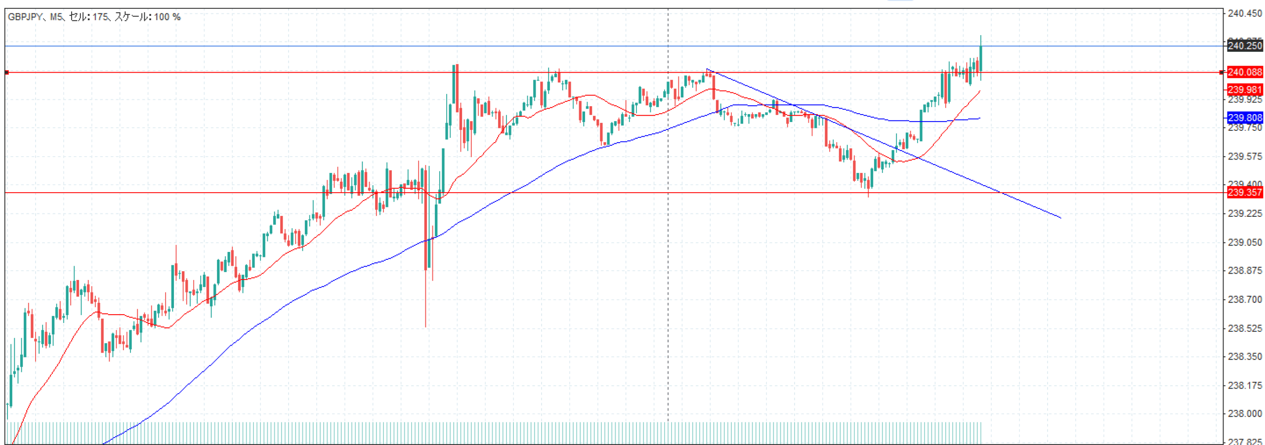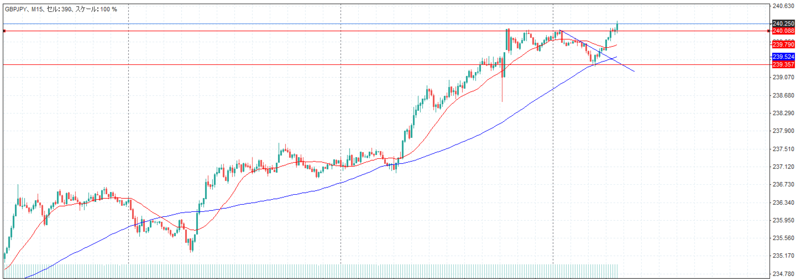 15分、5分ともに下降トレンドから上昇トレンドに転換