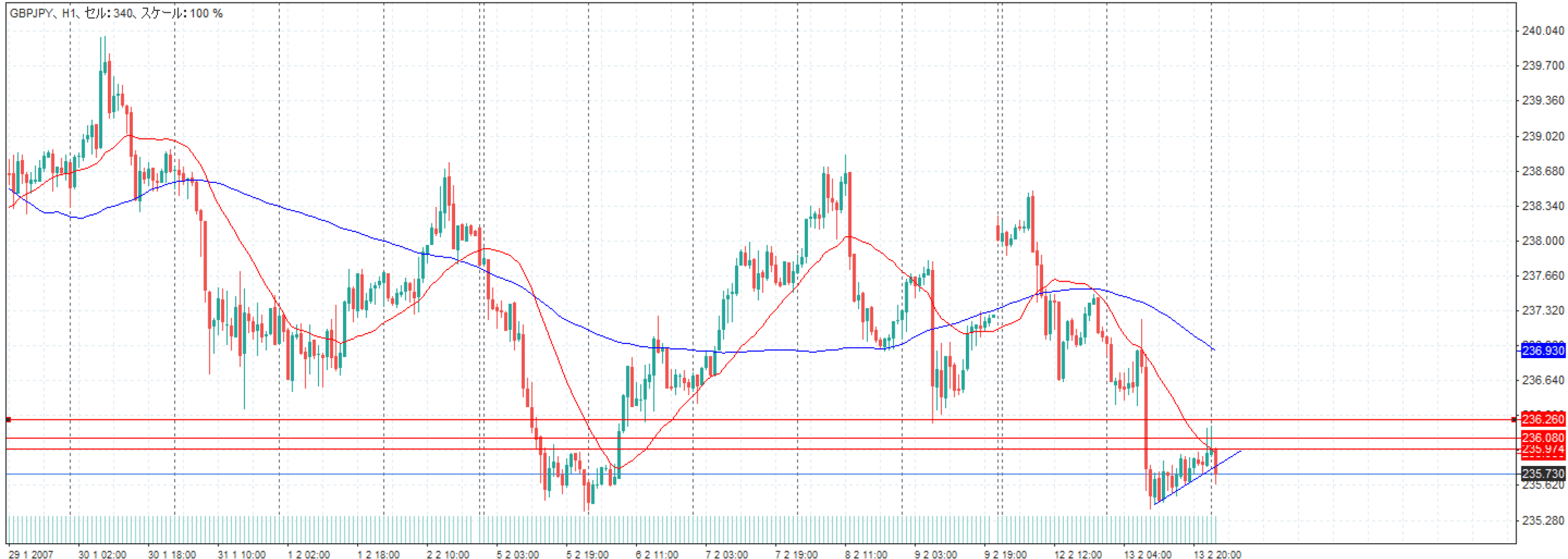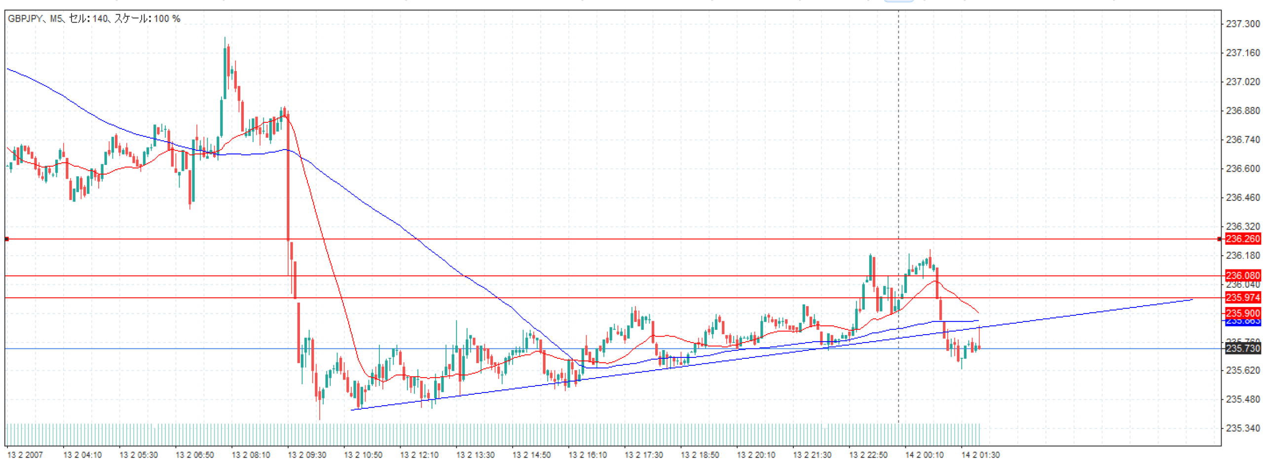 また、エントリーラインの少し下(2月6日の部分)を見ると下髭を複数作ったラインに当たる