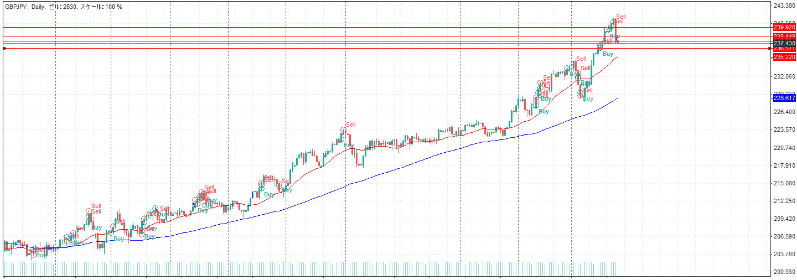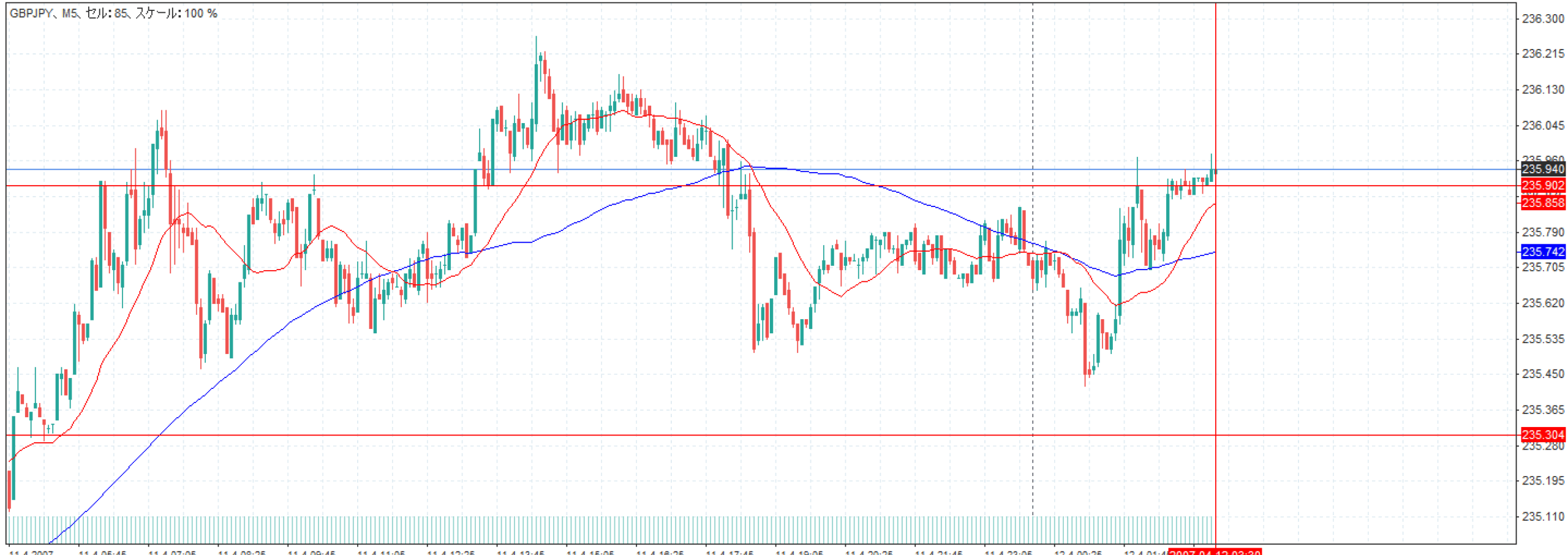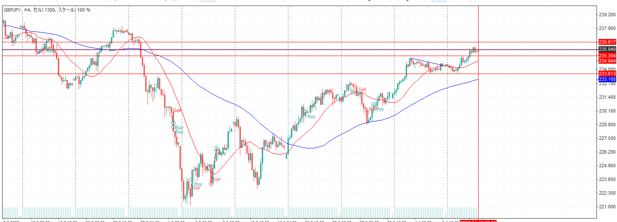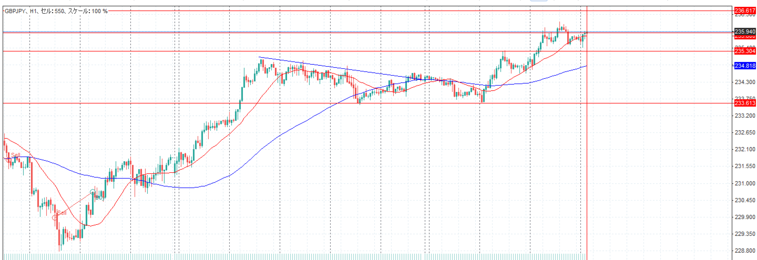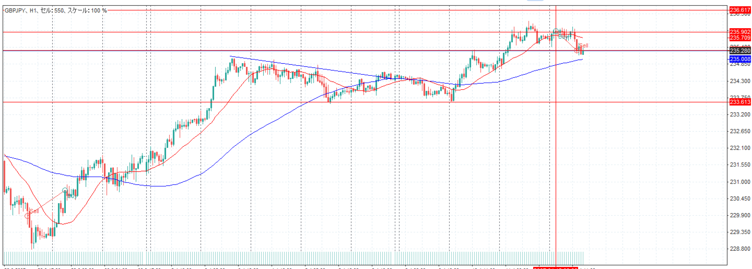 1時間の21SMAだけ見ると上がっていくように見えるためこの辺りの判断は難しいところ