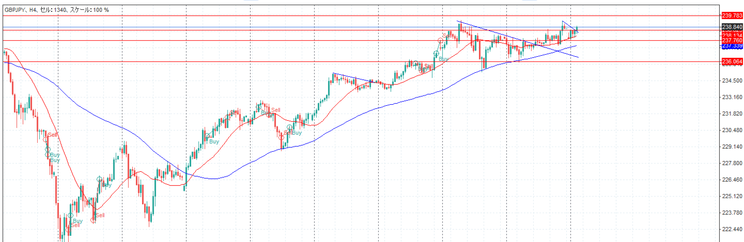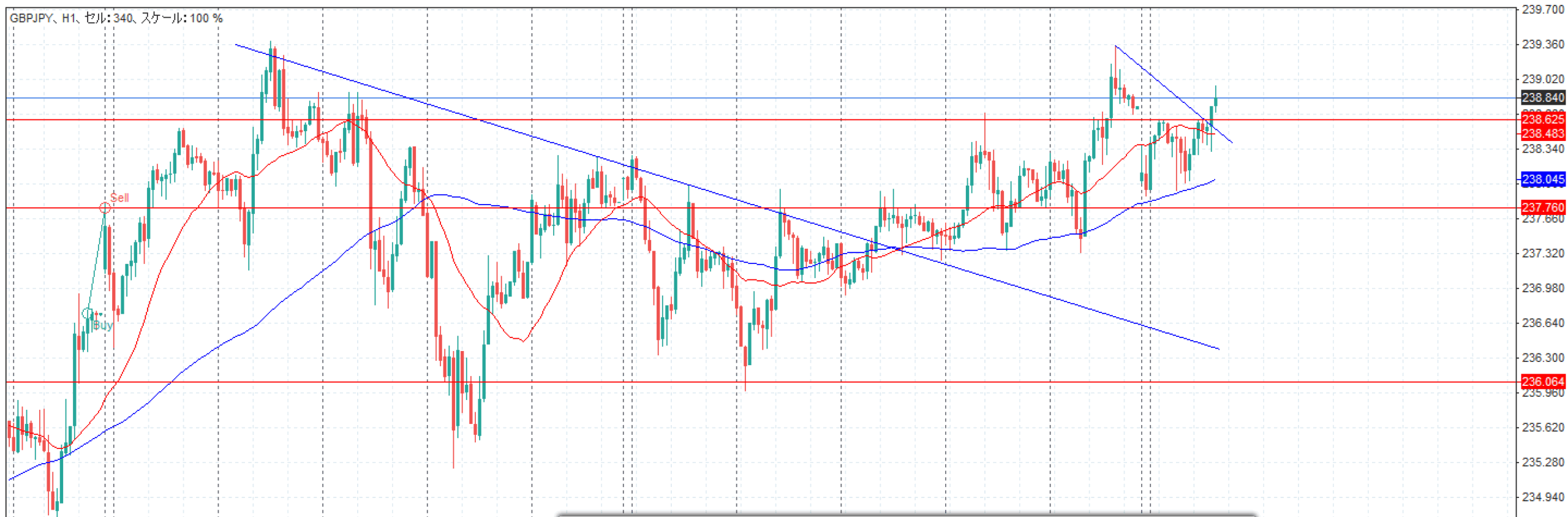 238.625辺りで何度もレジスタンスされていたが