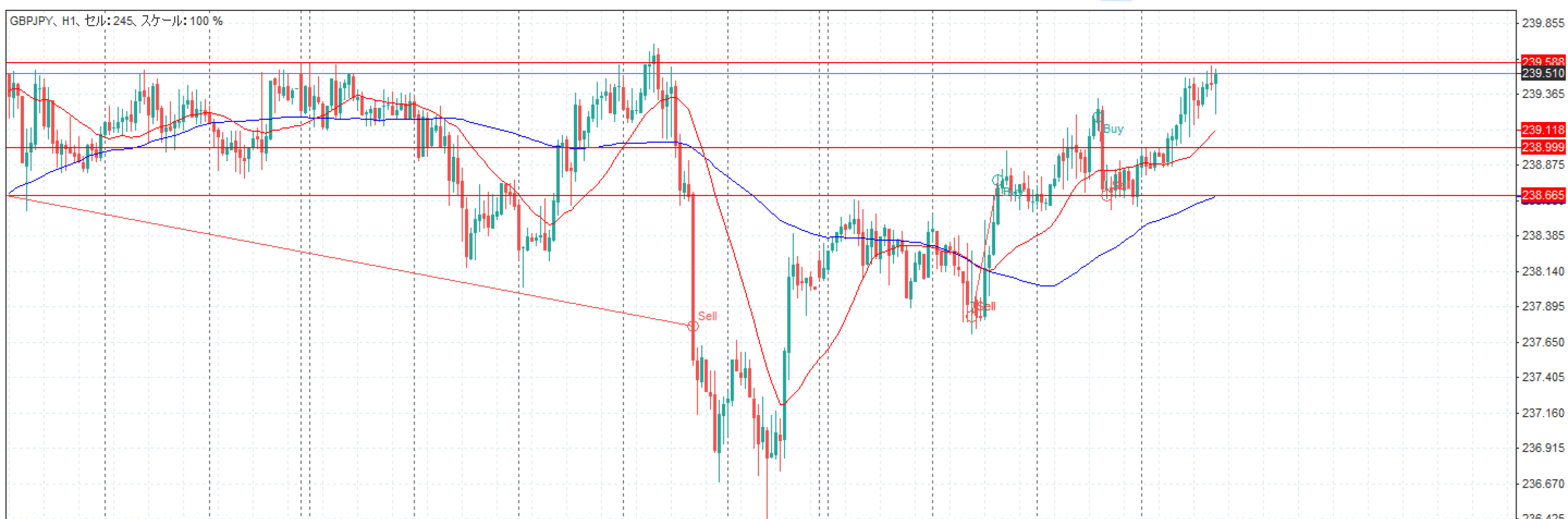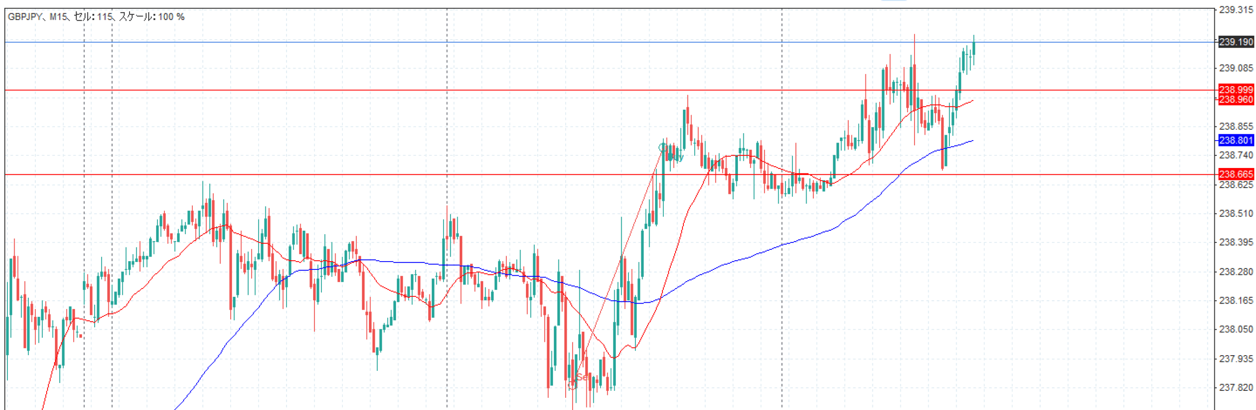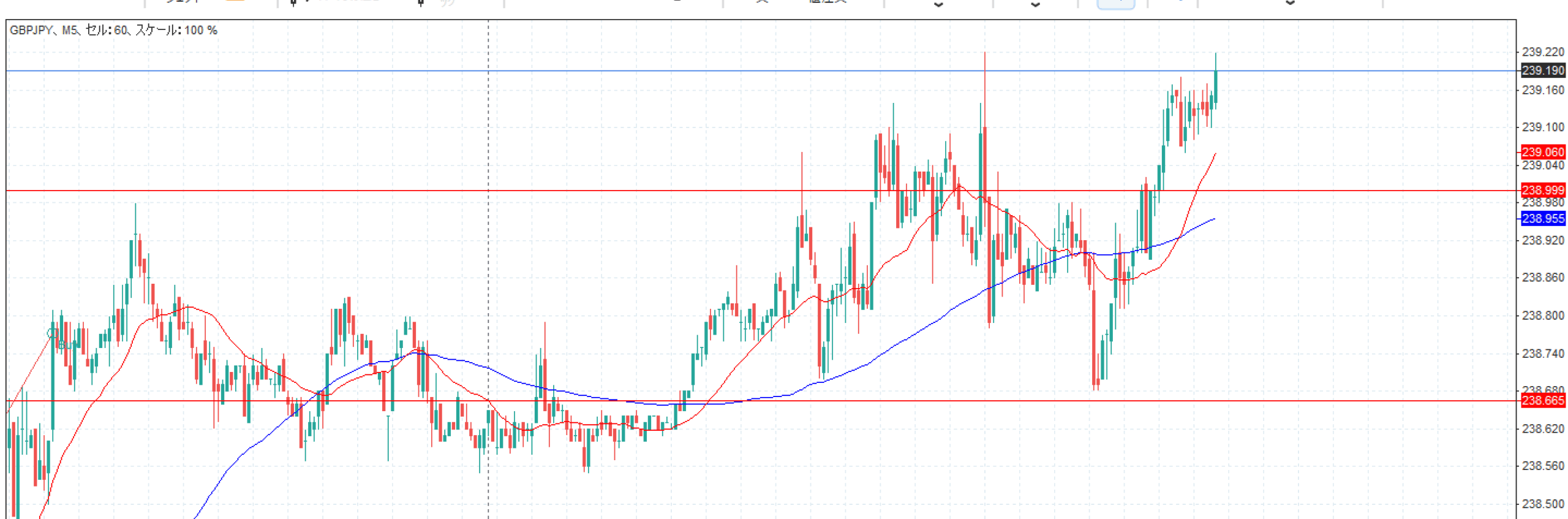 5分足の21SMAと84SMAの位置関係がある程度拡散してしまっている状態だったと反省