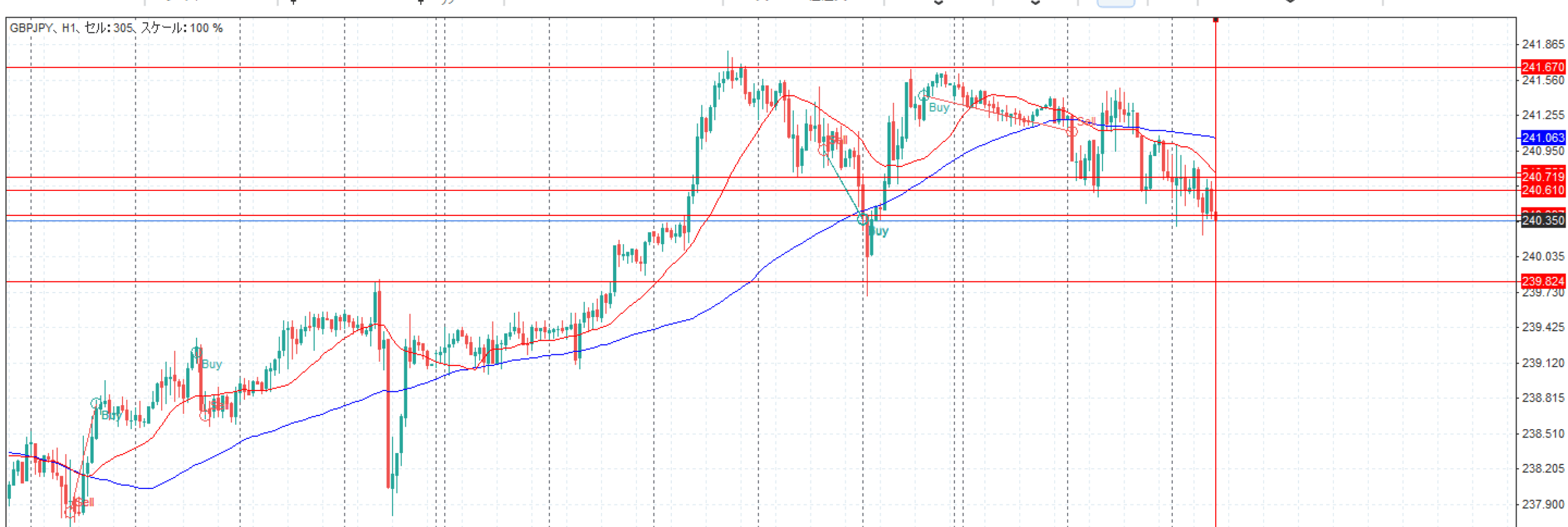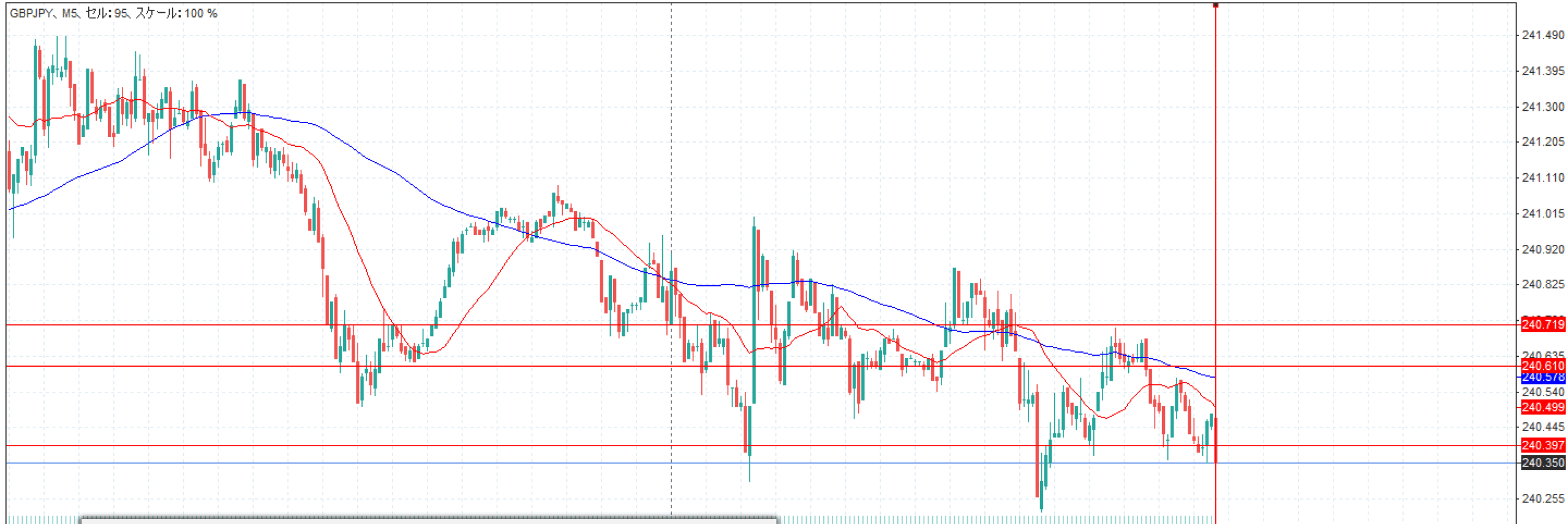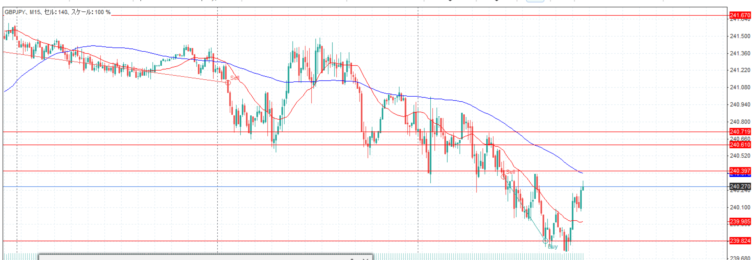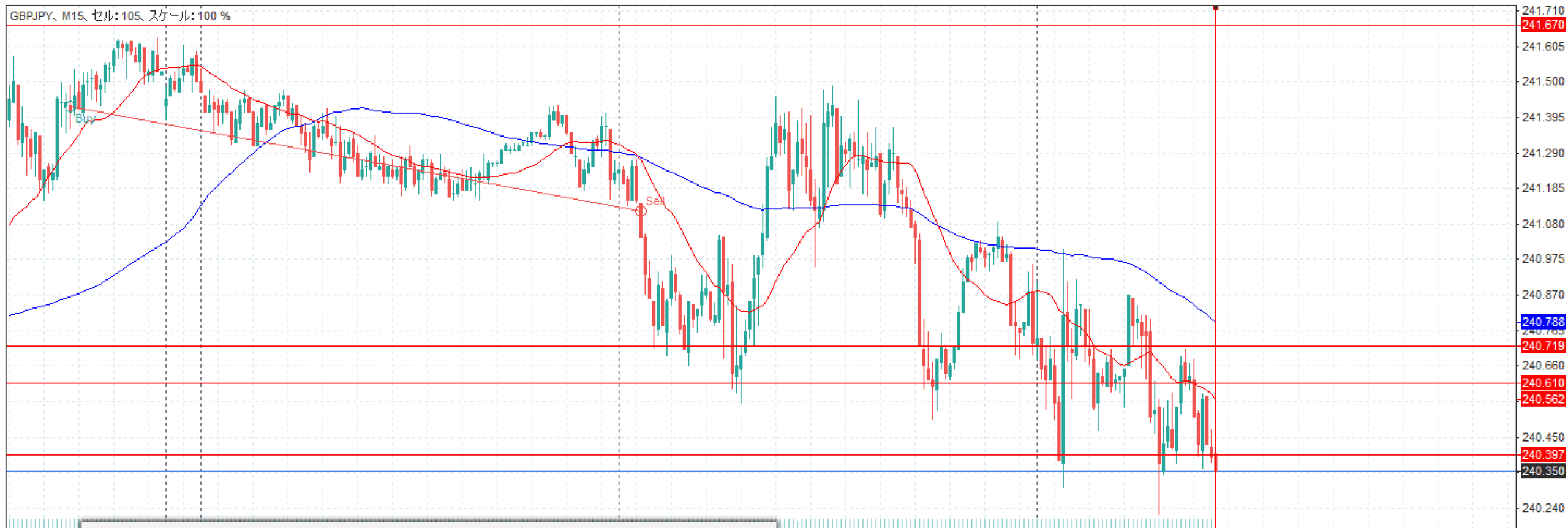 21SMAとローソク足の距離が空いているので差を埋めるために下降すると判断