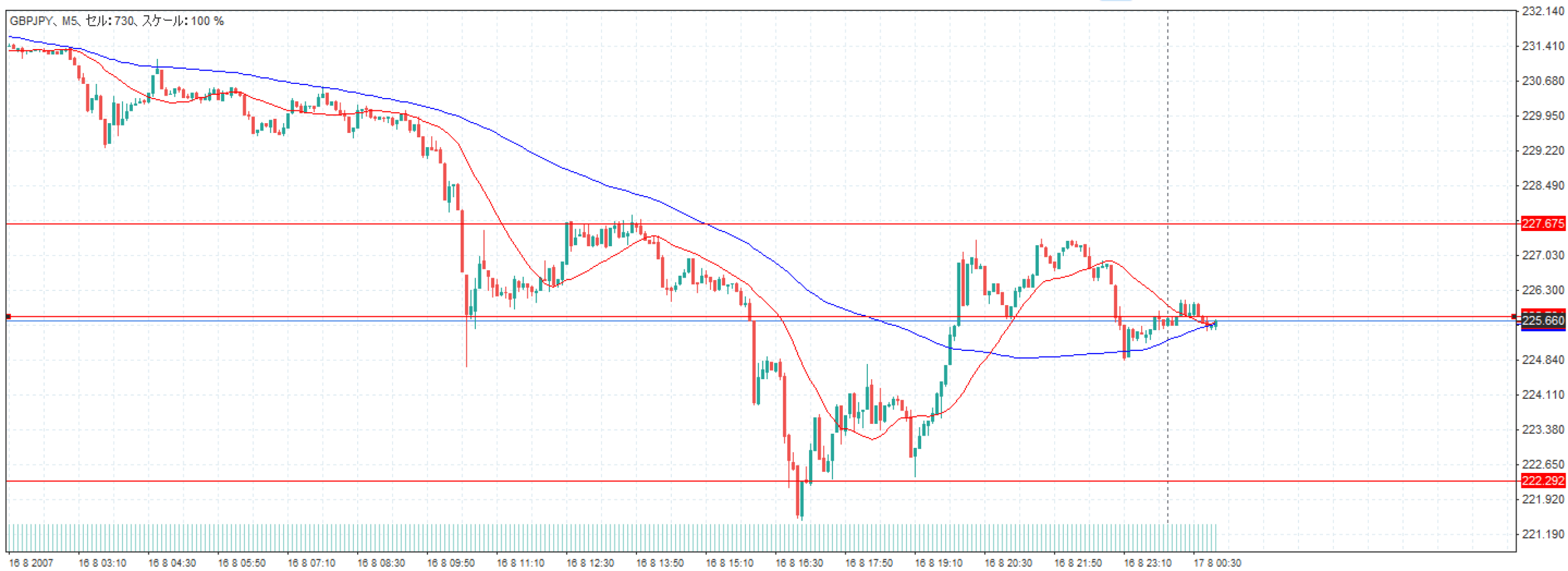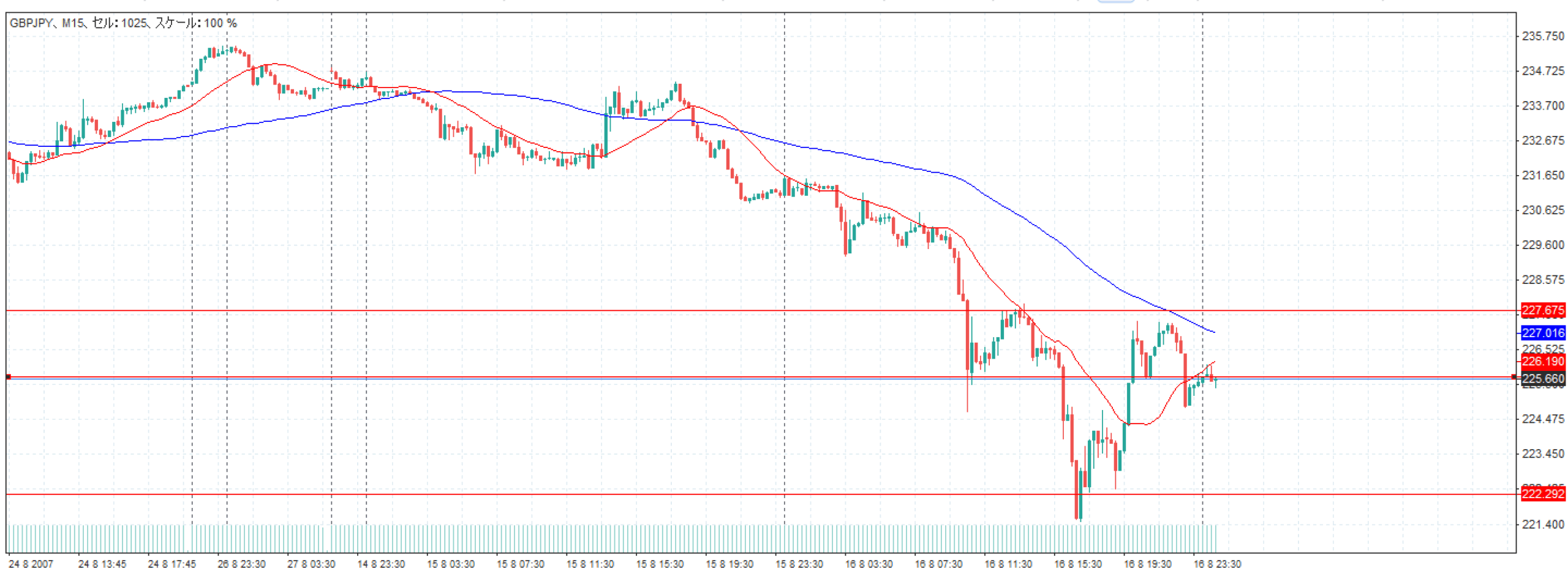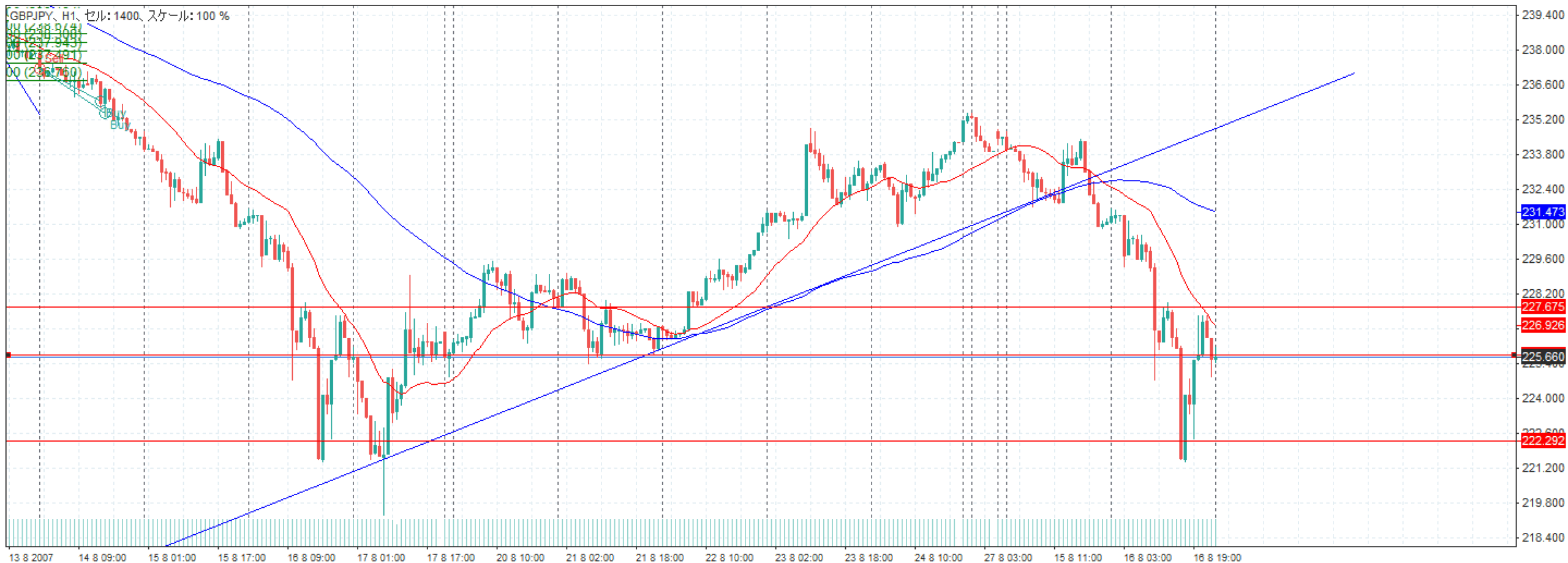 その後、安値をブレイクして225.660の水平線でレジスタンスされている