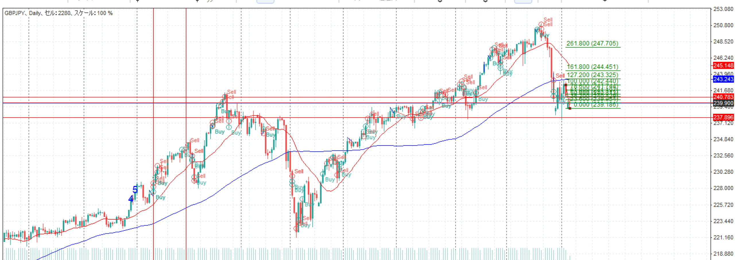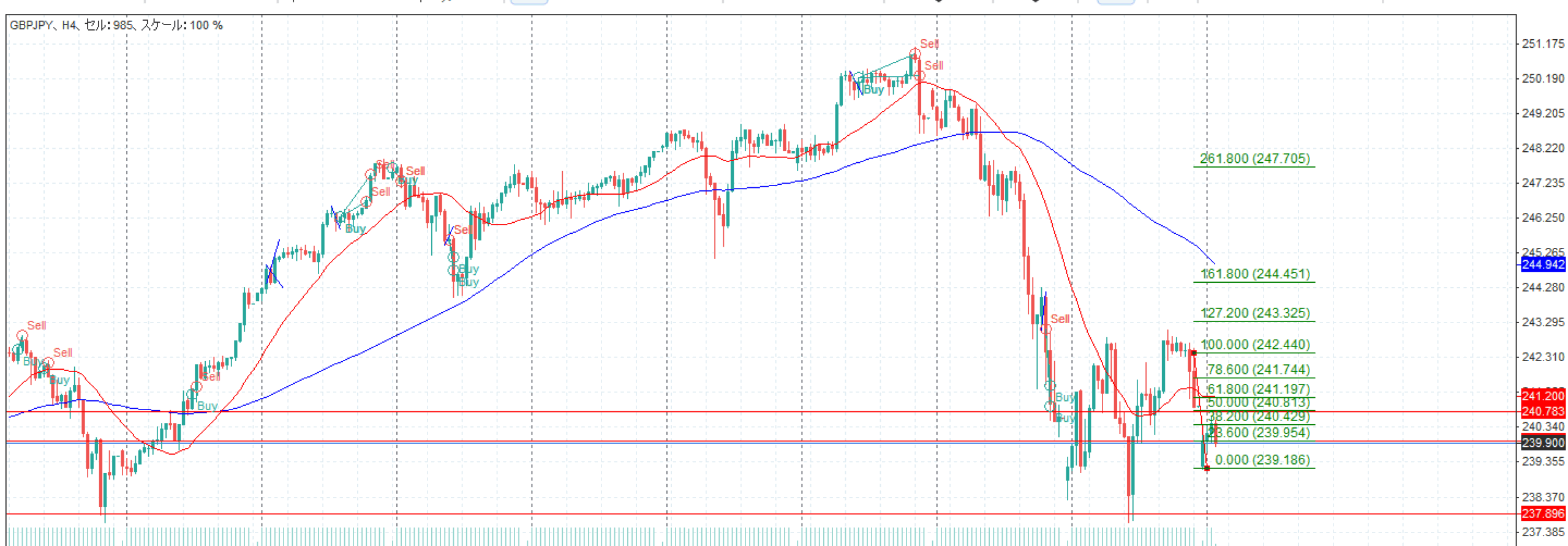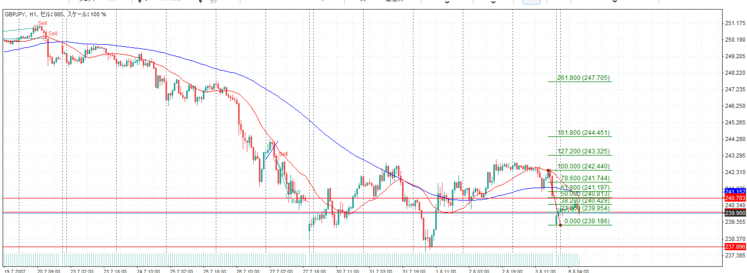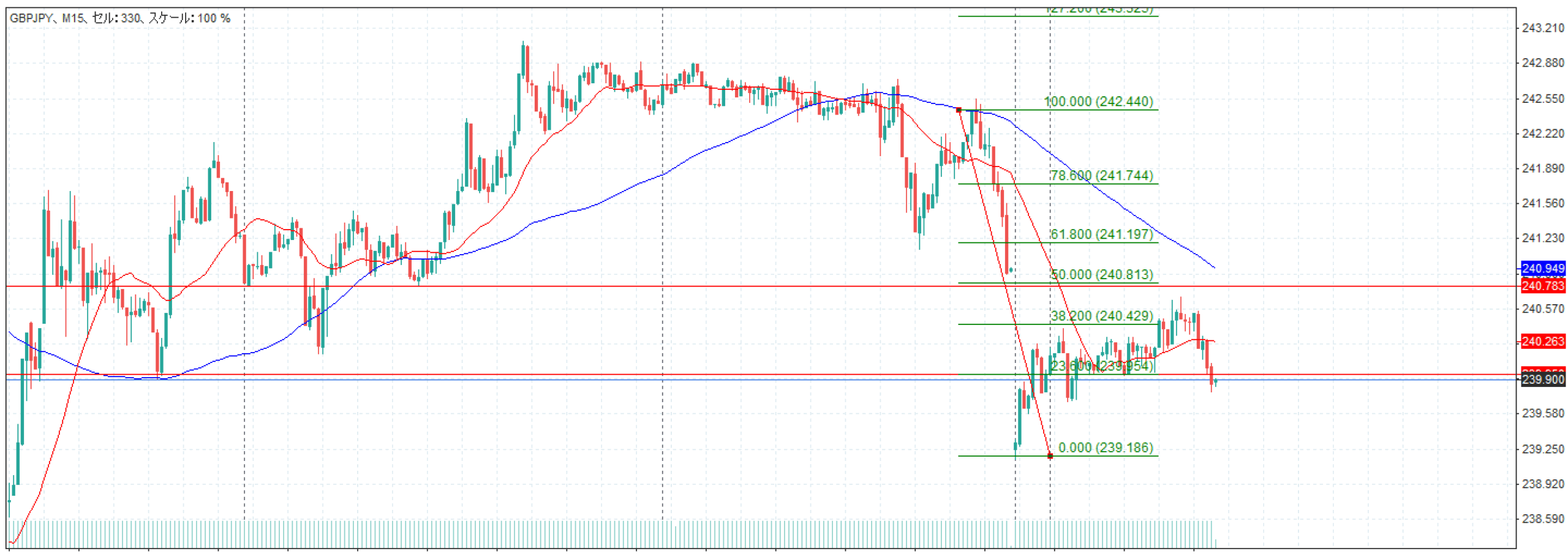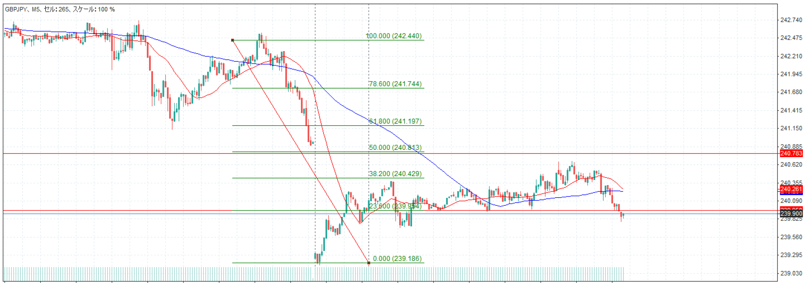 239.900付近で複数回安値を作り、239.900付近の水平線をブレイク